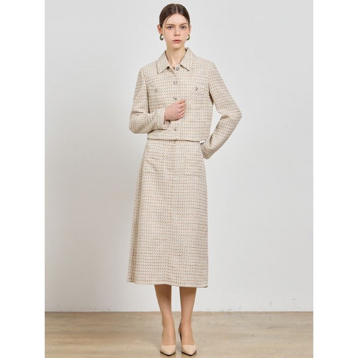 리스트 2SET 골드버튼 트위드 재킷슬릿 미디 스커트 2종세트