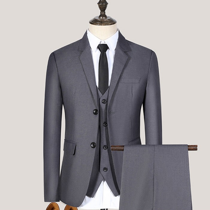 AOKADA 남성 정장 세트 슬림핏 베이직핏 수트 비즈니스 결혼식 하객룩 면접 오피스룩 들러리 남자 양복 바지 조끼 3종