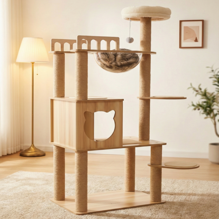 MILALOUIS 다기능 견고한 원목 감성 캣타워 스크래쳐 고양이장난감 대형 및 소형 고양이모두사용 원목캣타워, 1개, DX001