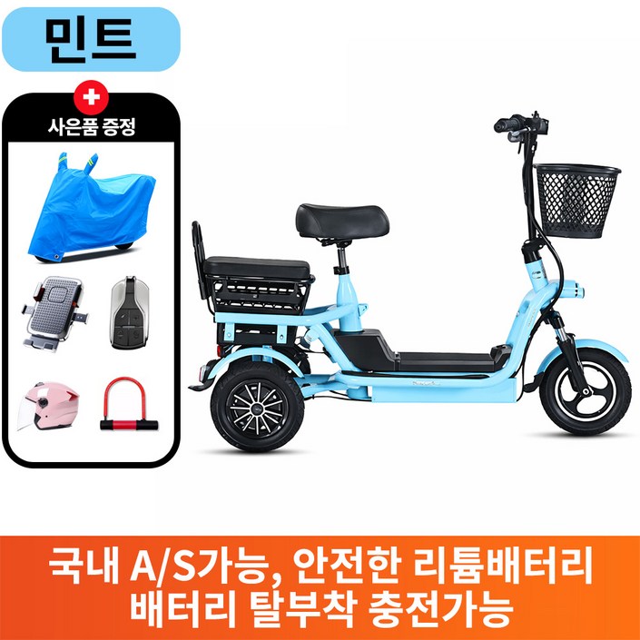 하이모터 편하게나들이 3인용 노인 여성 전기세발자전거 전동자전거 2인용전기자전거, 20. 민트 8A 30km 2인승, 경량스틸