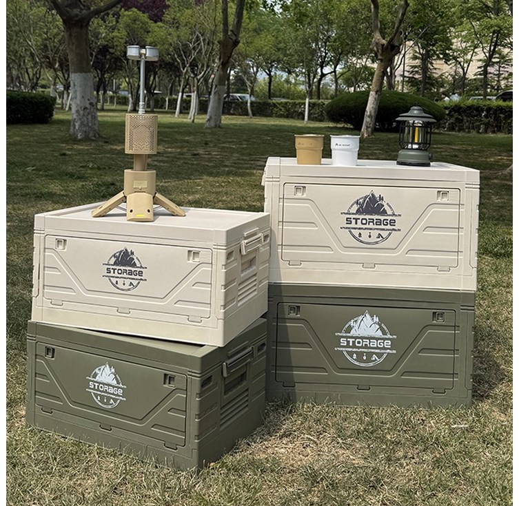 tooliva 접이식 캠핑 폴딩박스 수납테이블 대용량 리빙박스 차량용 멀티탭, 베이지