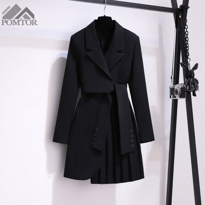 POMTOR 여성 봄가을 면접 고급 하객룩 정장 스커트 긴팔 원피스