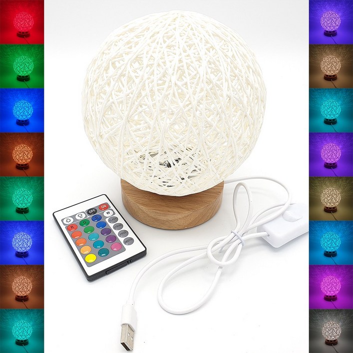 LED RGB 리모콘 라탄 등나무 무드등 카페 감성인테리어 간접조명 밝기조절 가능, RGB 등나무 무드등