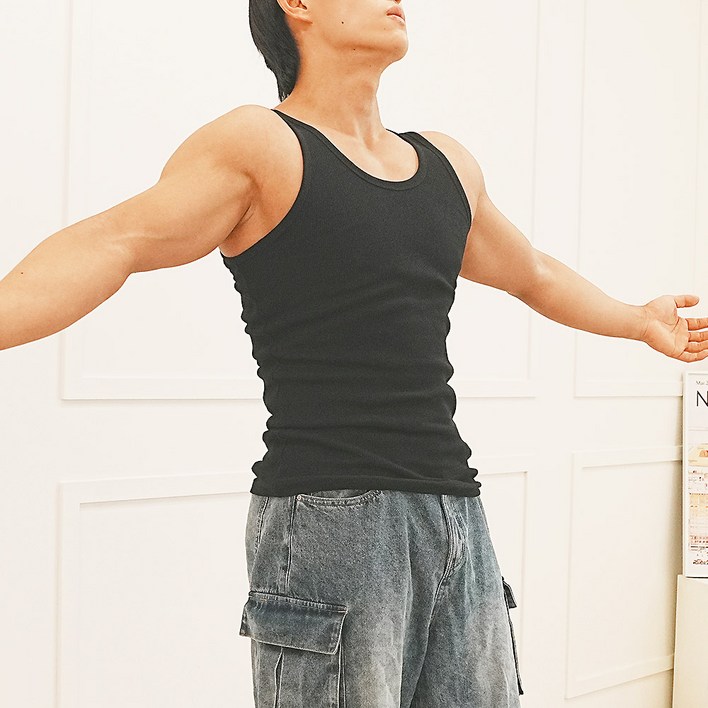 유투 국산 남성용 나시티 골지 민소매 기본 티